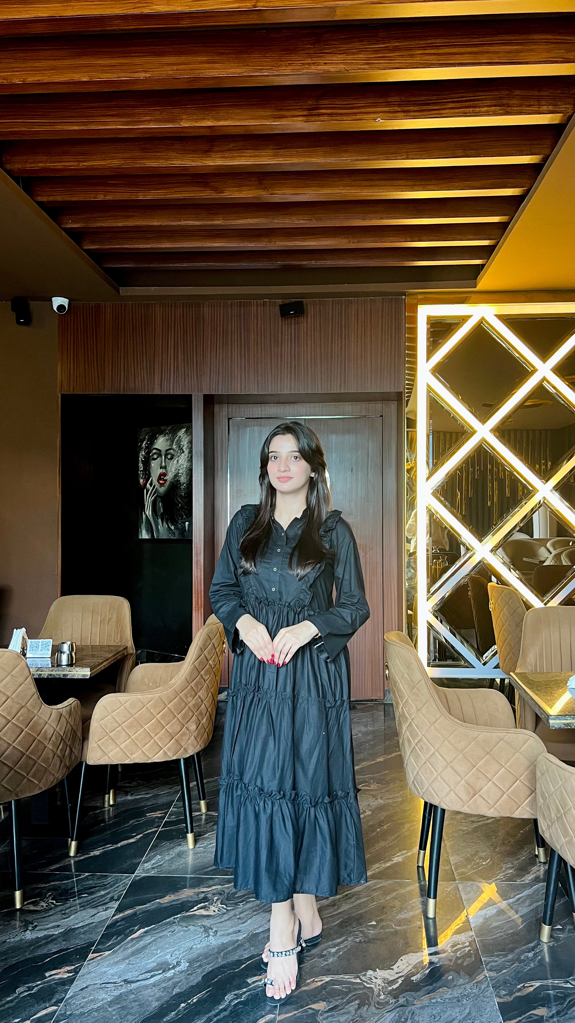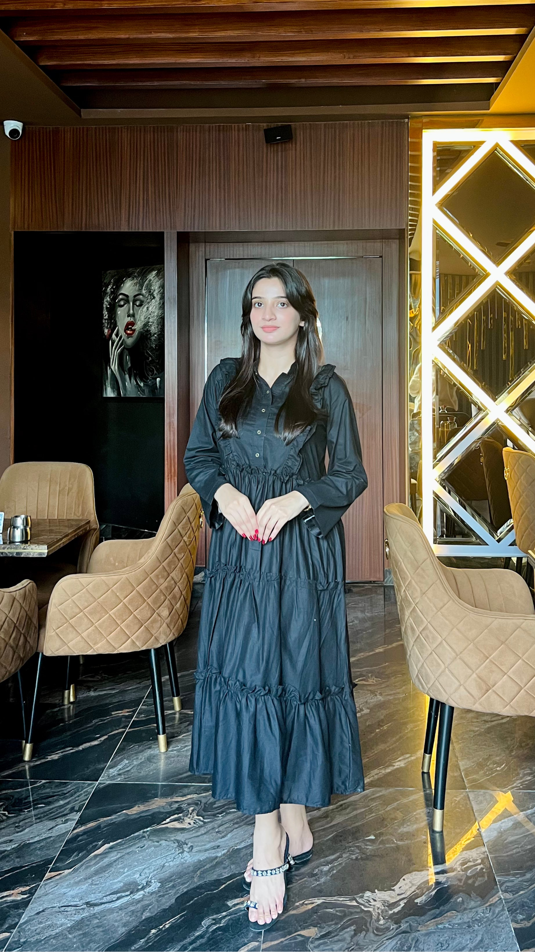 Meet Sophia – where timeless elegance meets everyday comfort. Crafted from premium cotton fabric, this black beauty features delicate ruffle detailing, a structured buttoned bodice, and a graceful tiered silhouette for the perfect flow ✨